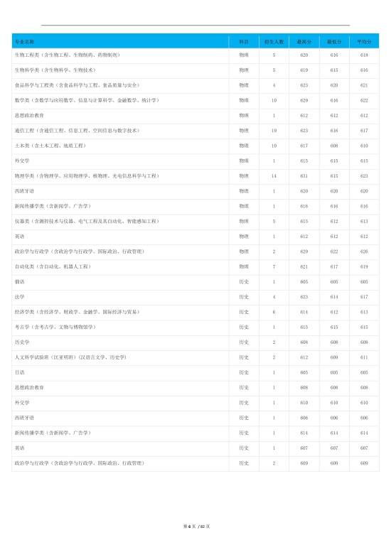 理科试验班(唐敖庆班)(数学类、物理学类、化学类、生物科学类、计算机类)专业的录取分数线最高,录取最低分为630分。政治学与行政学(政治学与行政学、国际政治、行政管理)(预科) 专业的录取分数线最低,录取最低分为487分。