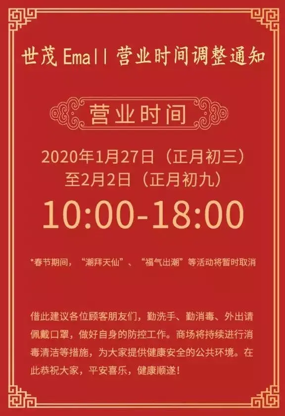 特殊时期 营业时间暂调整为10:00-18:00