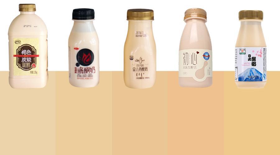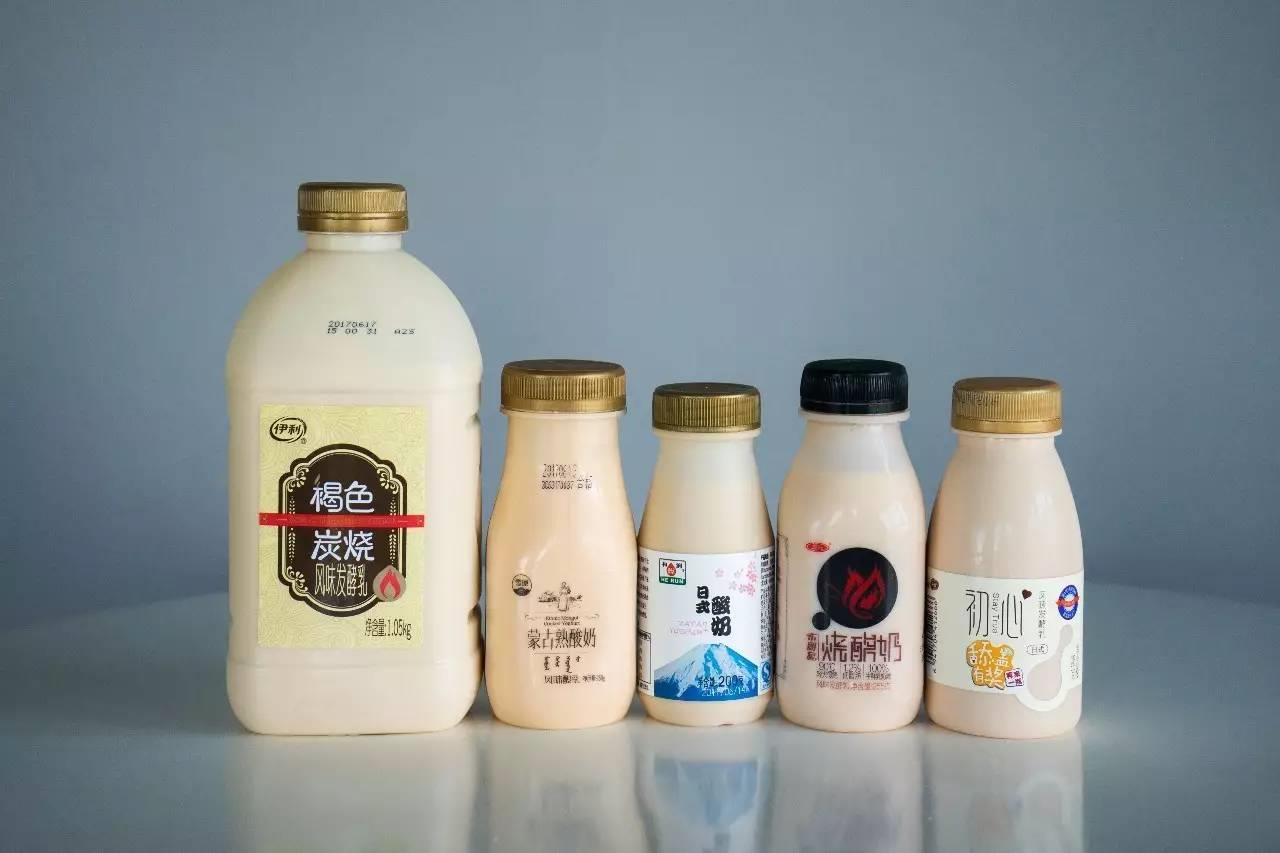 (伊利褐色炭烧风味发酵乳、雪原蒙古熟酸奶、和润日式酸奶、三元布朗旎烧酸奶、新希望初心日式酸奶)