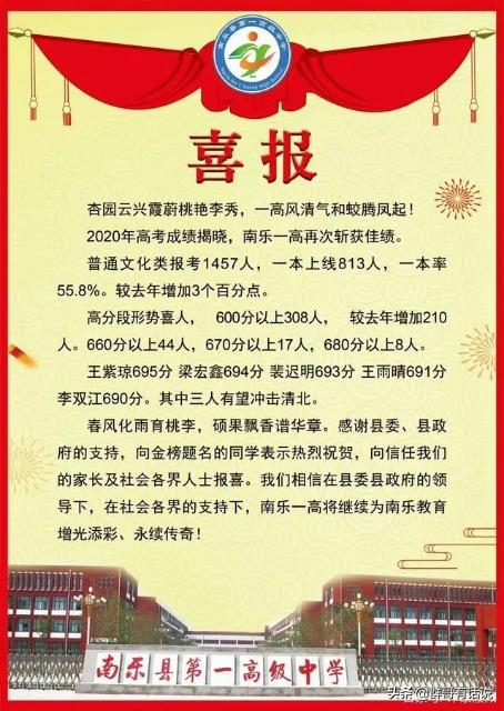 在2020年的高考中,全校理科超高分695分、694分、693分,三人有望冲击清华、北大,高分段方面680分以上有8人,660分以上44人,600分以上308人。