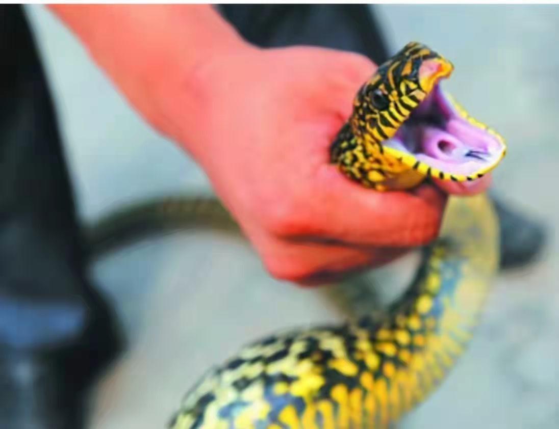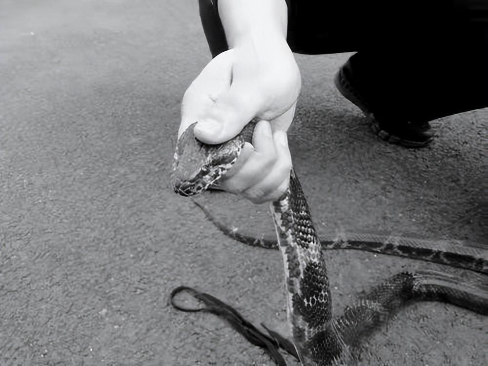 所以打蛇打七寸,有经验的人都知道是蛇的颈椎,只要将蛇的颈椎死死捏住后,无论是什么蛇都将大大降低威胁。不过可不是所有蛇都能直接上手的,在遇到诸如眼镜蛇这种剧毒蛇后,即使是专业的捕蛇人也需要先借助工具压住它的七寸位置,随后才能慢慢地将眼镜蛇拿捏在手中。