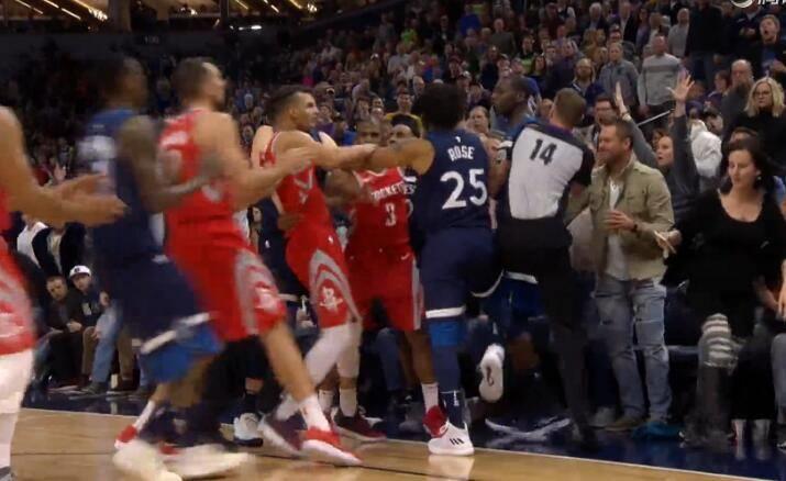 火箭和森林狼发生小冲突 吉昂推倒保罗后被格林推翻