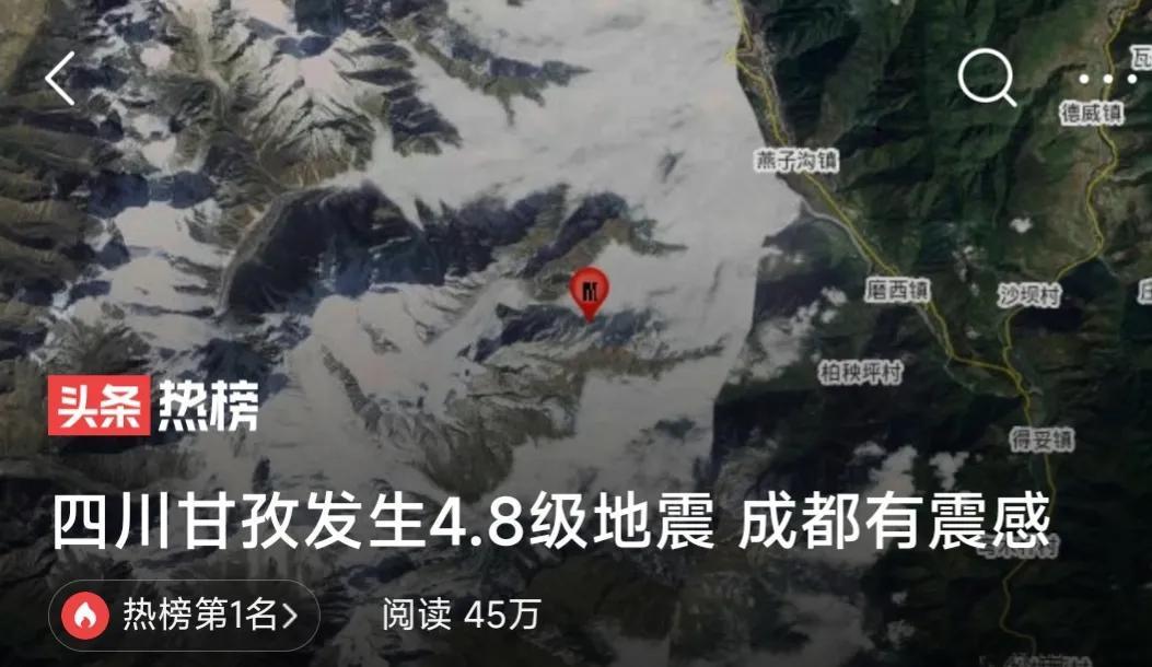#地震##四川甘孜发生4.8级地震 成都有震感#