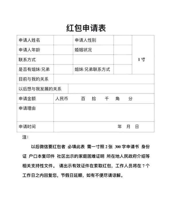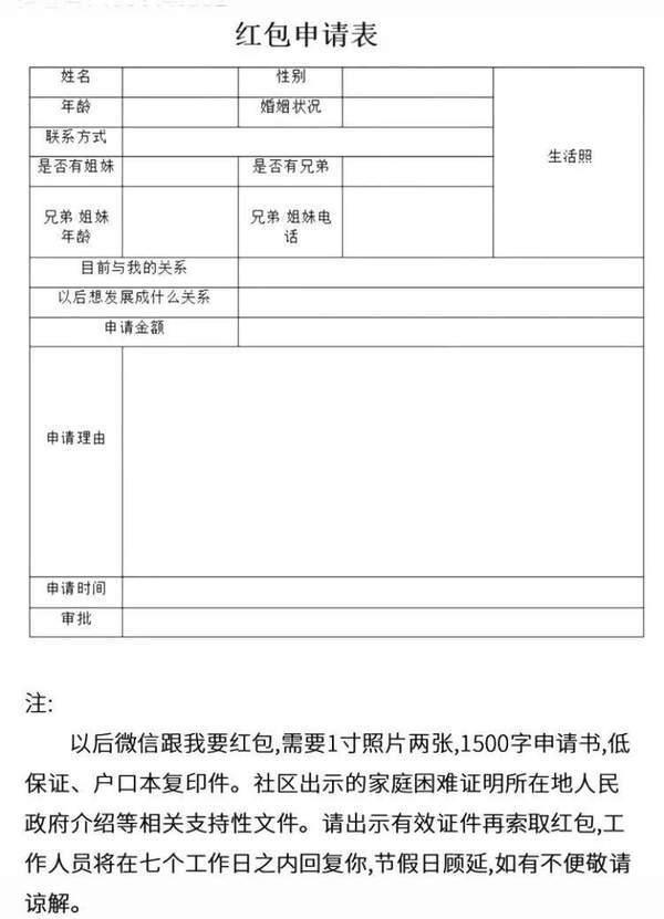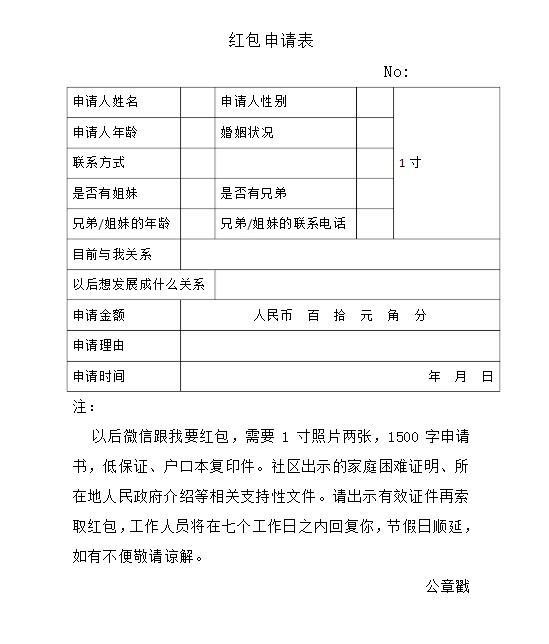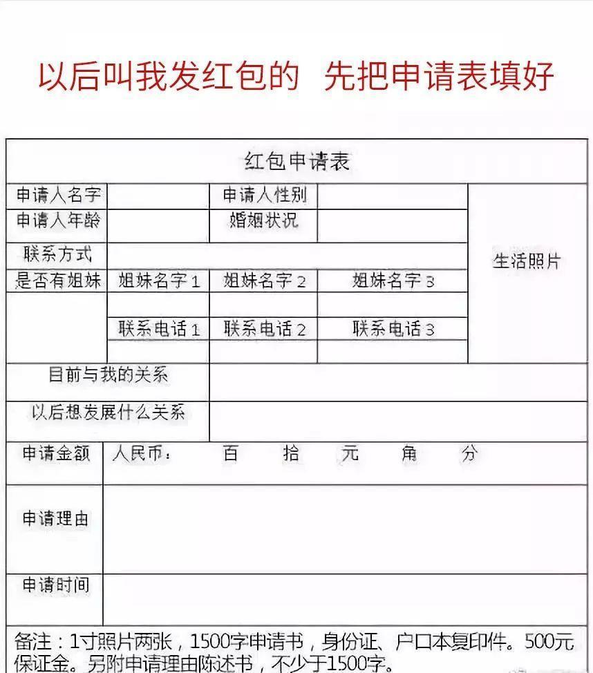 抖音搞笑红包申请书图片 微信发红包申请表模板