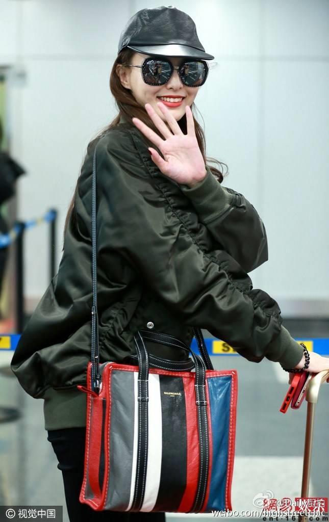 唐嫣机场街拍烈焰红唇,包包像麻袋帽子毁所有