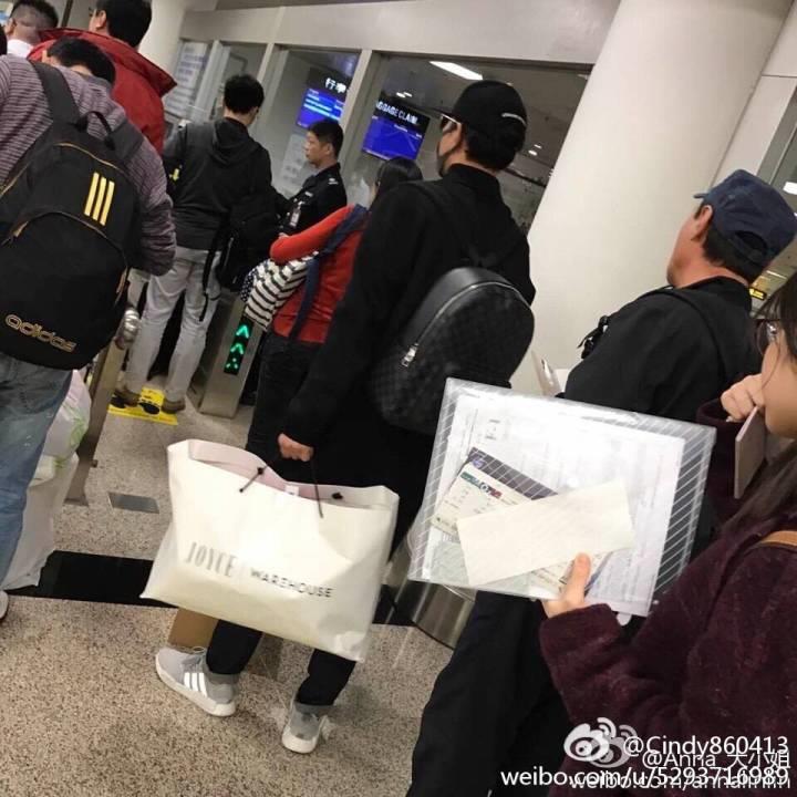 唐嫣机场街拍烈焰红唇微微一笑好甜,不过包包好像麻袋帽子毁所有。