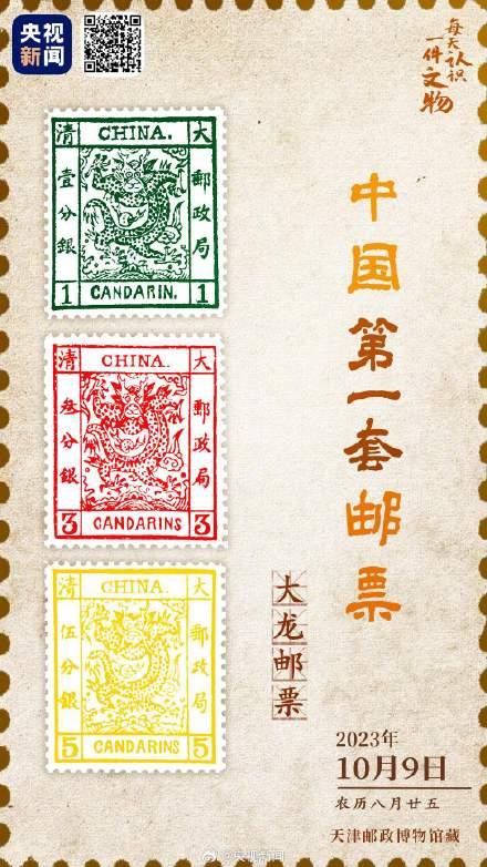 大龙邮票,发行于1878年7月,是中国第一套邮票。邮票图案正中,绘一条两目圆睁的五爪蟠龙,在云彩水浪的衬托下腾云驾雾。大龙邮票采用凸版印刷,铜制版模是手工逐枚雕刻制成,先后分三期印制发行,即薄纸大龙、阔边大龙、厚纸大龙。
