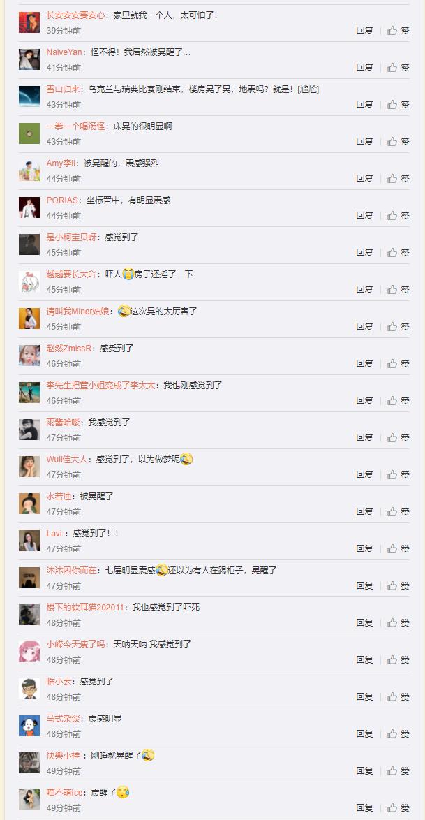 来源:中国地震台网微博