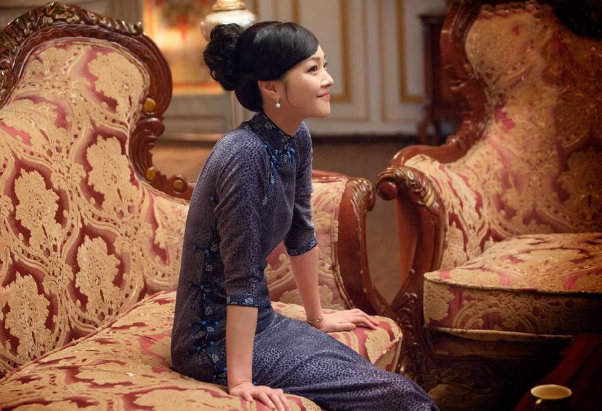 此次在剧中,何杜鹃全程旗袍装上阵,这身色调凄迷的旗袍装,印花在光泽下充满了神秘感,何杜鹃眼神忧郁,发型凌乱,倚靠在墙边,十分唯美,气质出尘。