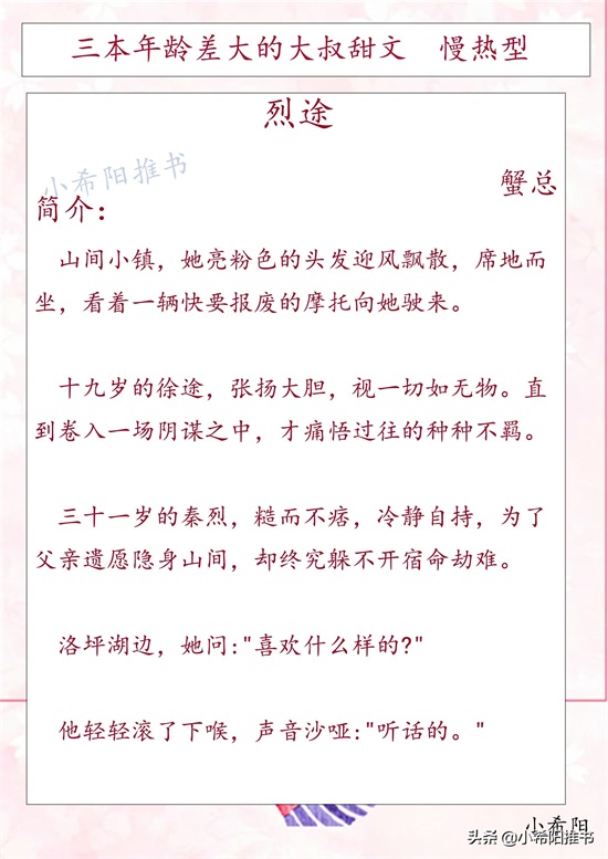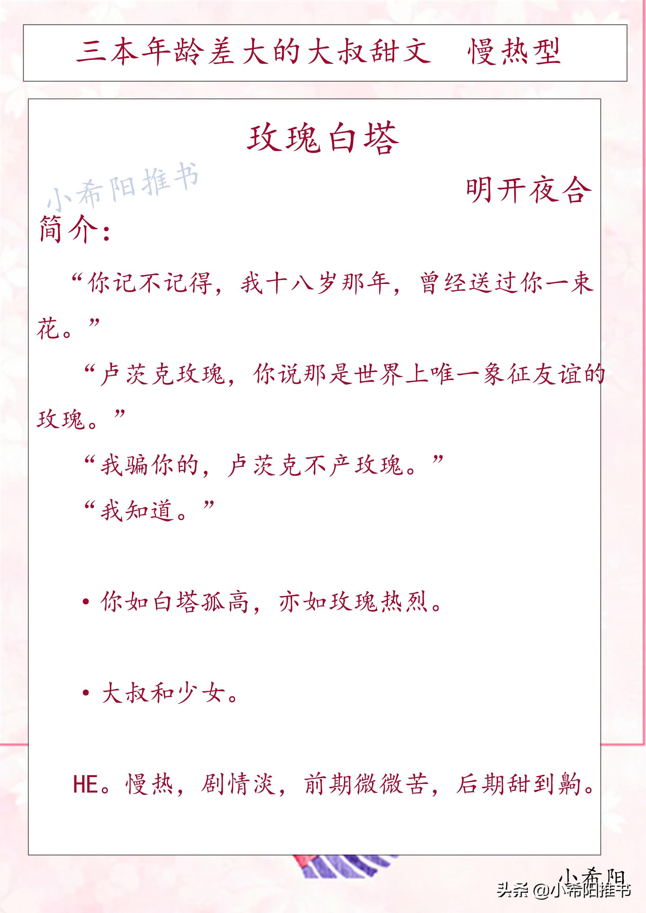 三本年龄差大的大叔甜文 文笔细腻《玫瑰白塔》《烈途》