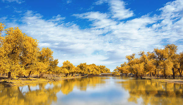 胡杨耐旱耐涝,生命顽强,是荒漠地区特有的珍贵森林资源。胡杨不仅有稳定荒漠河流地带的生态平衡,防风固沙,调节绿洲气候和形成肥沃的森林土壤的作用。每年秋天,胡杨林也是众多摄影爱好者与深度旅行者最喜爱的地方。