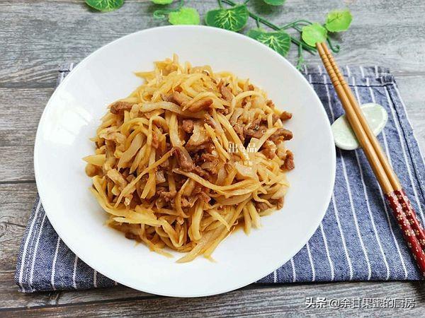 2、准备好的猪前腿肉丝,肥瘦相间,肉质鲜嫩,瘦而不柴。炒食可选这部位的猪肉。