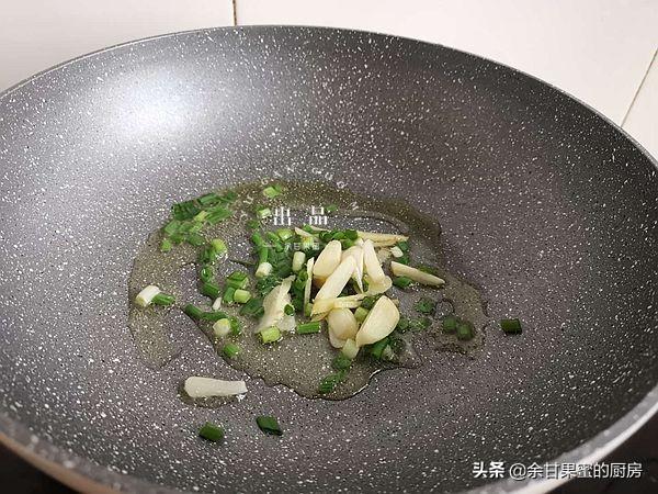 6、锅中加入适量橄榄油,加入姜葱、蒜片炒一炒,可以炒过之后将姜、蒜铲出锅。