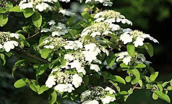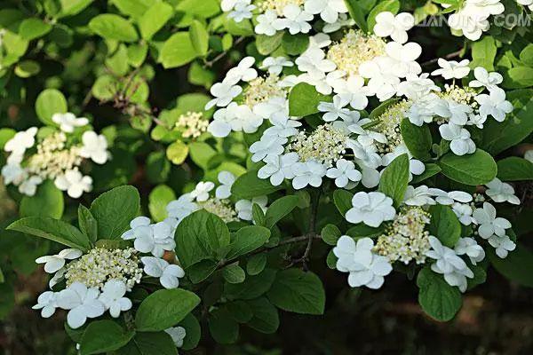 1荚蒾属:荚蒾属(拉丁学名:Viburnum Linn.),茜草目,忍冬科灌木或小乔木,常被星状毛。单叶对生,稀轮生。花小,聚伞花序,集生为伞房状或圆锥状花序;花辐射对称,花冠辐状、钟状、漏斗状或高脚碟状,花柱极短,核果,核多扁平,稀近球形。新选模式种:绵毛荚蒾 V. lantana Linn. 约200种,分布于北半球温带和亚热带地区,中国约74种,南北均产之,其中有些供观赏用,尤以具有放射状大型不孕花的种类最为美丽。 荚蒾属植物多为优良的观赏植物,该属的许多种仍处于野生状态。