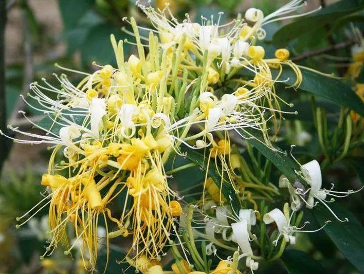2忍冬属:描 述:Lonicera L. 忍冬属,忍冬科,约200种,分布于北半球温带和亚热带地区,我国有100余种,其中金银花L. japonicaThunb. 入药有清凉散热之效,有些供观赏用。直立或攀援状灌木;叶脱落或常绿,对生,单叶,全缘或很少波状分裂;花左右对称或辐射对称,成对生于腋生的花序柄之顶,有苞片2和小苞片4,或为无柄的花轮生于枝顶;萼5齿裂;花冠管长或短,檐部2唇形或几乎5等裂;雄蕊5;子房下位,2-3室,很少5室,每室有胚珠极多数;果为浆果,有种子数颗。
