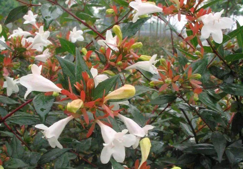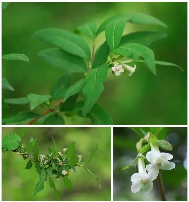 3六道木属:忍冬科,约30种,大部产东亚,少数产墨西哥,我国有六道木A. biflora Turcz. 和糯米条A. chinensis R. Br.等9种,大部分分布于中部和西南部,东南和北部较少见。灌木;叶脱落或宿存,对生,全缘或有齿缺;花小而多数,由白色至粉红或紫色,1至数花排成聚伞花序,腋生或生于侧枝之顶,有时形成一圆锥花序;萼片5、4或2,狭长,宿存;花冠管状、钟状或高脚碟状,5等裂;雄蕊4,两两成对;子房3室,但仅1室发育;果为瘦果状,顶冠以宿萼。
