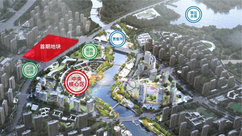3、从环境上来说,金科有贾鲁河水系加持,相比之下要比万科的环境更丰富一些,金科中原周边的生态环境没得说,贾鲁河、南水北调、常庄水库在周围,水系丰富,注定了片区的密度不会太高,整体比较宜居,但还是有点荒,水系需要治理,如果能达到碧桂园西湖那一片西流湖的呈现效果就好了(如规划图所示,金科中原的内部,有贾鲁河支流穿过,万科航海未来城并没有水系穿过)。