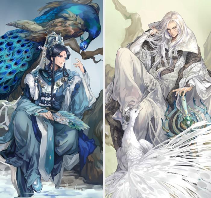 在神蛊温皇这个角色一开始被塑造时并没有如现在一般的具体,只是起着协助中原对抗西剑流的作用,但在三弦总监正式确定在工作中的主导地位之后,他将孔雀这一动物的华丽气质引入到温皇的身上,并且将武侠文学中“毒至尊”孔雀胆的元素与神蛊温皇的形象做结合,温皇和“任飘渺”在身份上的转换也被视为蓝白两种孔雀在世人眼中所表现的不同。