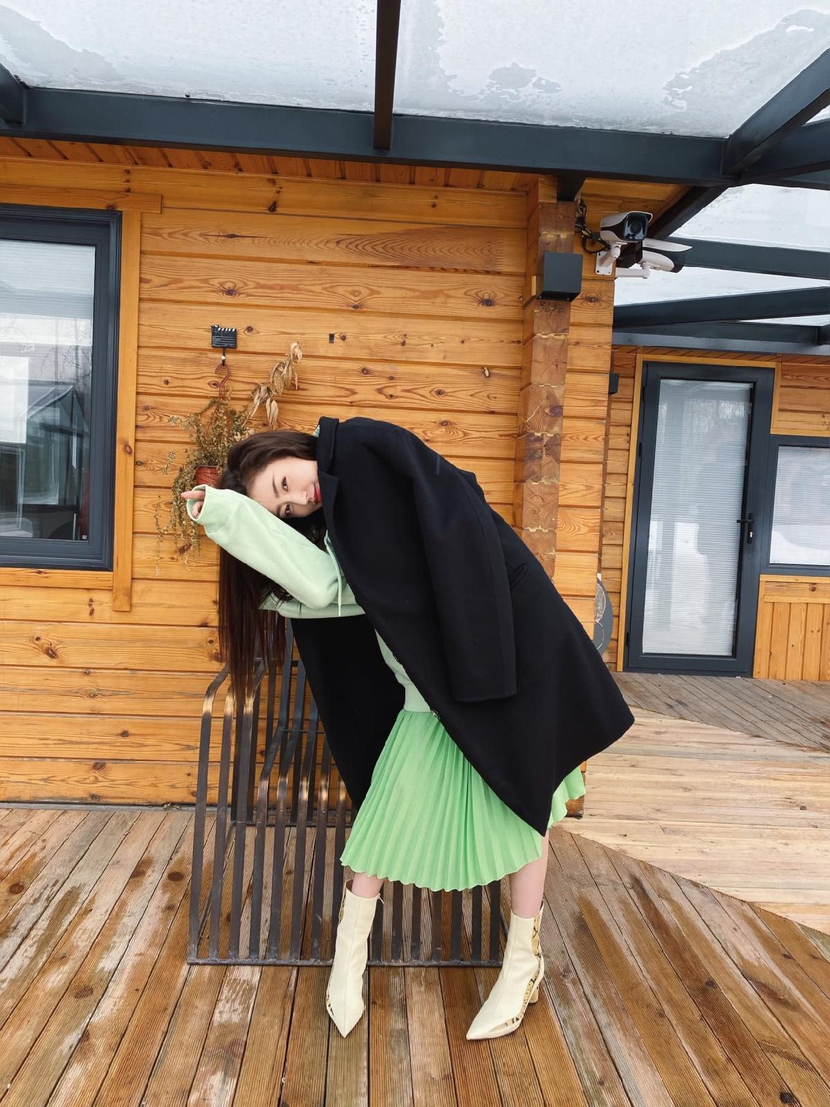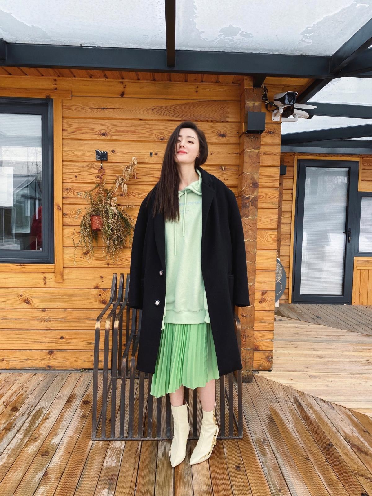 她在时尚方面的表现力也非常不错。近日张天爱在绿洲晒出了一组雪天的美照,只见她身穿一件绿色的卫衣外搭黑色的毛呢大衣,很是吸人眼球。