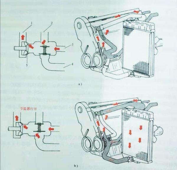 (2)节温器损坏造成打不开,使冷却液不能顺畅进入水箱形成大循环,使水温很快升高造成开锅。必要时更换新件。