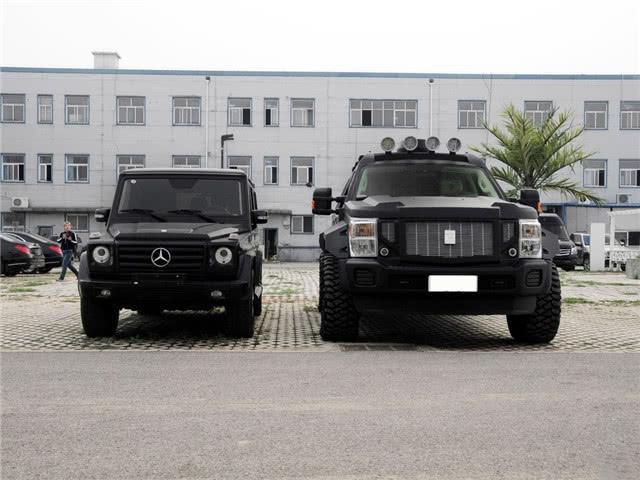 乔治巴顿这款车很大,我们拿奔驰G级来做对比就知道了。奔驰G在SUV里不算小了,但在乔治巴顿旁边就成了小孩。乔治巴顿的长度5米91,宽度2米34,高度2米5,再长点就得挂黄牌了。这个车高有些地库是进不去的,而且停车也非常不方便,经常要占两个车位。