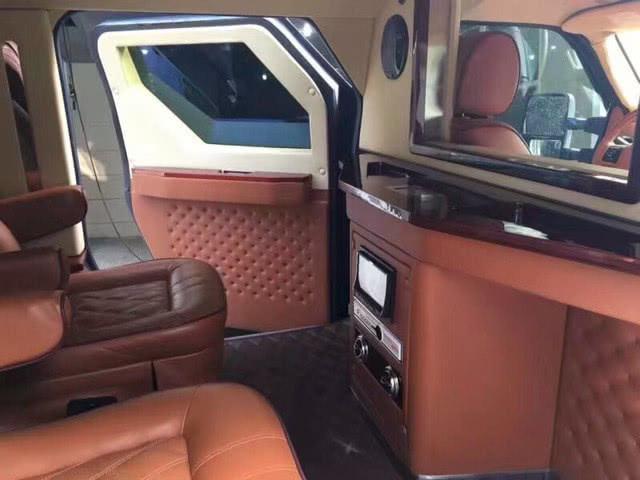 乔治巴顿本质上还是一台改装车,像这个内饰,老刘个人感觉虽然看似豪华,但格调、品位不是很高,有种暴发户的气息。用料倒是不错,全车大部分位置都是真皮覆盖,配置也挺全的,而且可以根据客户喜好单独定制部分功能。特别是后排,可以改装成两座的,成了一个独立的空间,与前排彻底隔离,一般都配置了独立的娱乐系统、车载液晶电视、通讯呼叫系统、冰箱、吧台等,后排隔音都做了加强,保障了老板的私密性。