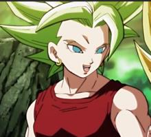 布罗利首次展示,在布罗利以人形态使用巨猿力量的基础上,进行的超赛变身,虽然仍然 是超一,但战斗力超过悟空和贝吉塔的超蓝形态。气焰为绿色。