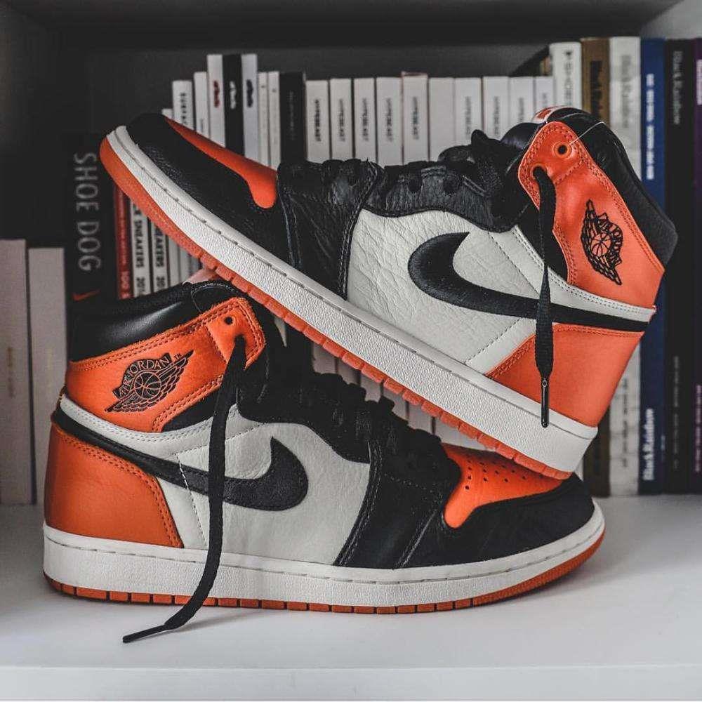 2015年,也就是上面这场表演赛的30周年之际,Nike 根据当年乔丹比赛时所穿球衣为灵感进行设计,上文中也提到了注意照片里球衣的颜色,没错,Nike 把球衣中的黑、白、橙色提取了出来,三色拼接,并采用荔枝皮革打造鞋身,打造出了第一款正式的“扣碎篮板”——Air Jordan 1 “Shattered Backboard”,也被称为“黑扣碎”。