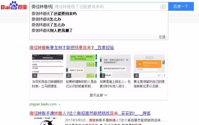 小编在百度上搜索关键字“微信转错钱”就可以看到好多好多求助贴讲述自己转错帐他人不还的事情。