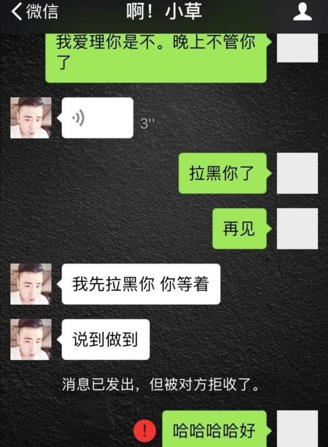 他手没有队长快,队长先把他拉黑,并且说到做到,等张鹤帆再发消息,就发不出去了,被对方拒绝,谁不说一声队长干得漂亮呢。