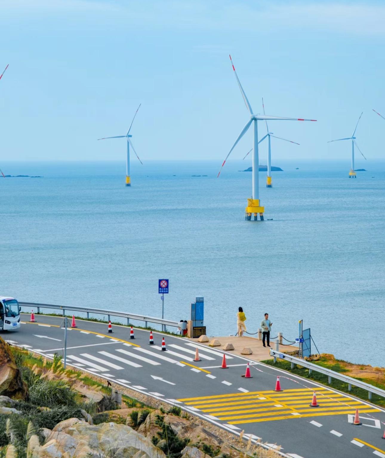 北部湾生态廊道是平潭岛的一处新开发的游景区,游客可以在观景台上感受大海的浩瀚,观赏一望无际的风车海。