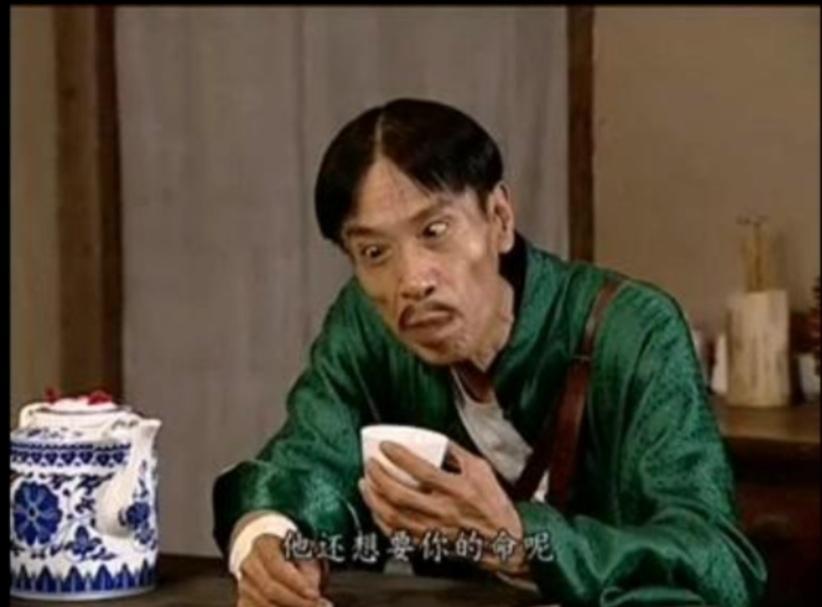 干枯瘦小皮包骨的小身板、总是斜吊着的三角眼、啥时都保持得有模有样的中分头,随便往哪一戳,就是一副标准的“汉奸相”,加上他那一开口就不着四六、令人喷饭的台词