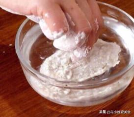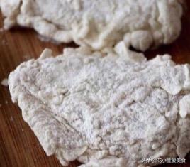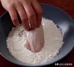 第六步:将泡过水的鸡翅再次放入混合粉中,用按压的揉搓的方式压鸡腿,使鸡翅表面形成好看的鳞片状。