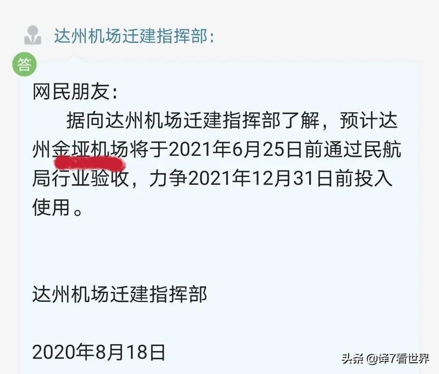 最近,一位网友咨询相关部门想了解新机场的通航时间问题。