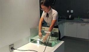成都“85后”创客周刚发明了一个不怕水的插座,在水中拔插头不触电,十分神奇。周刚喜欢专研,在他很小的时候,他就对电很感兴趣。通过视频我们可以看到,工作人员把亮着的灯泡和插座一起放进盛满水的水缸。