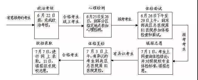 有意报考的考生可从省教育考试院网站(www.jseea.cn)下载或到县(市、区)人武部领取《江苏省军队院校招收普通高中毕业生政治考核表》,填报个人信息并报送人武部,6月22日前完成。