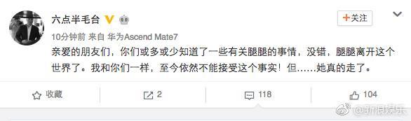 不管网络上传播的腿腿的死因是否正确,但我们的女神腿腿真的离我们远去了。