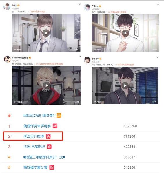 就在近日,这四名本该存在二次元的男主角周棋洛、许墨、白起、李泽言陆续在新浪微博中开通了各自的专属微博,就在开通后的4个小时内,吸粉高达32万并且窜上微博热搜。