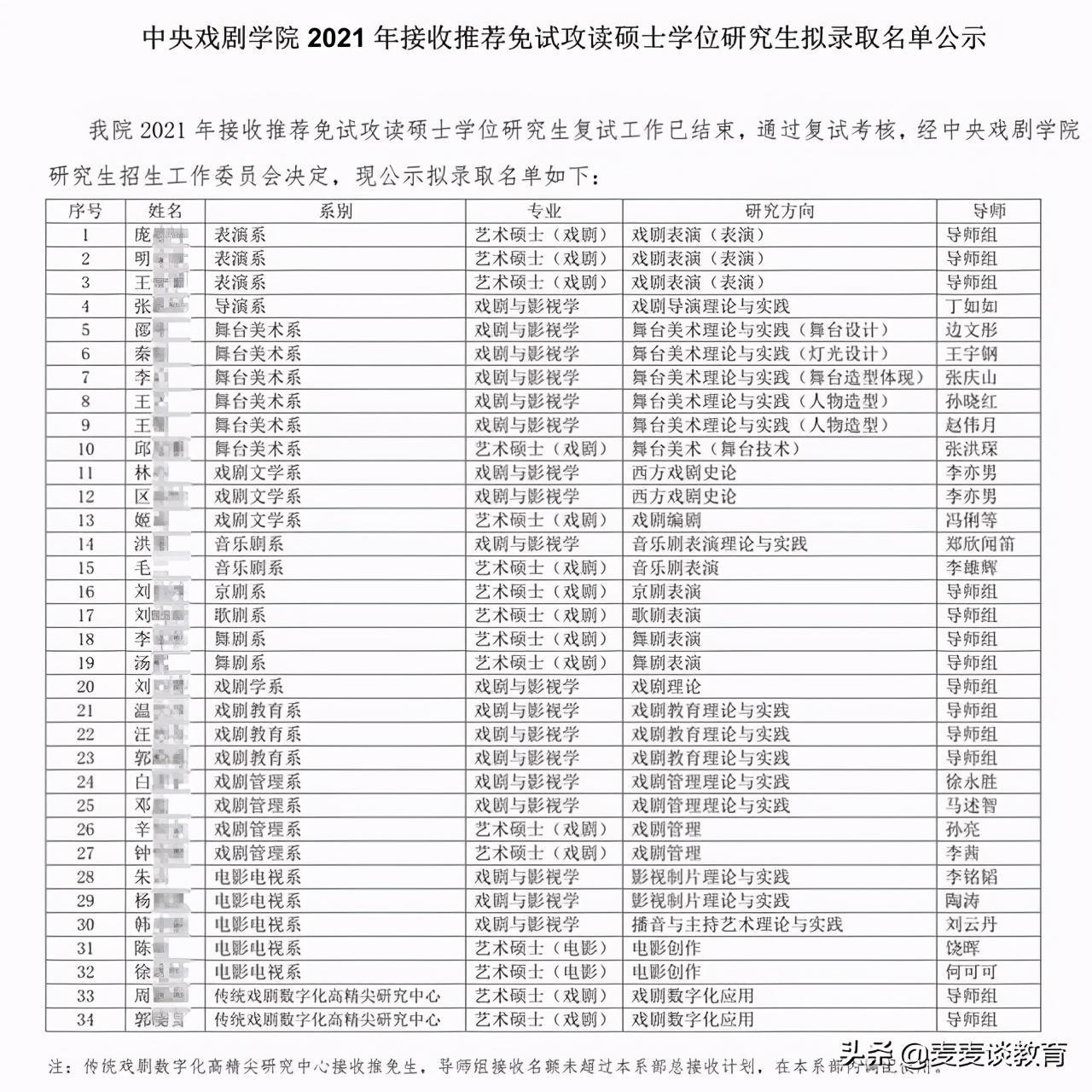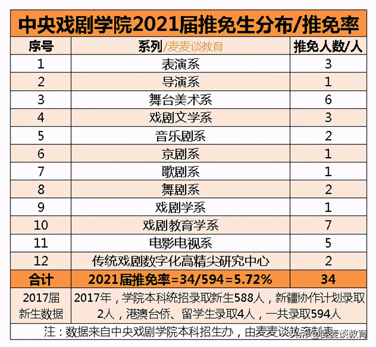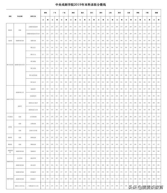 注:数据均来自中央戏剧学院招生办公布的数据,由麦麦谈教育整理制表,如有侵权,请联系删除!