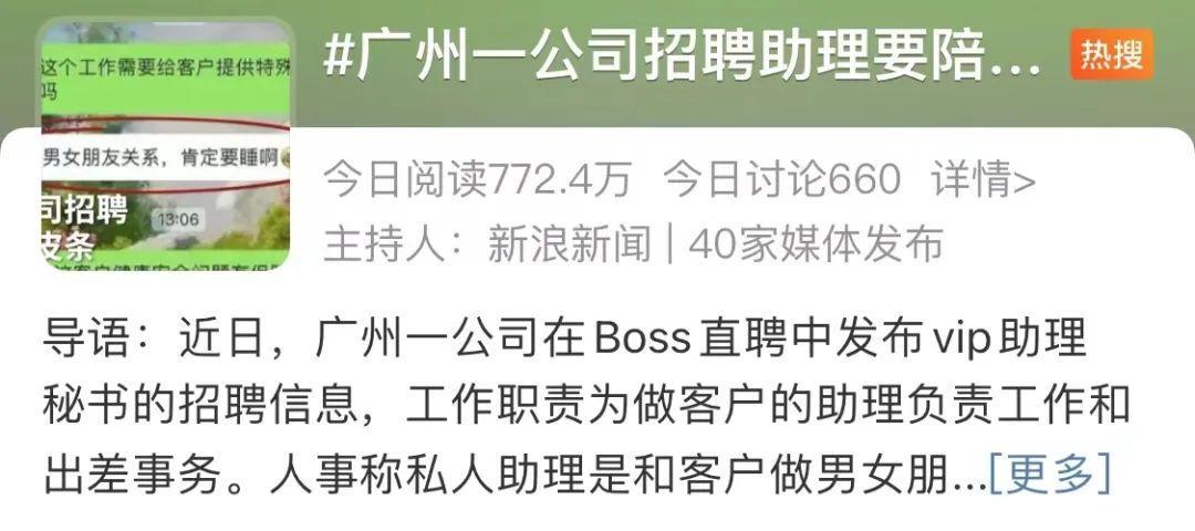 知名平台又现“色情招聘”!助理要陪客户睡觉?回应来了