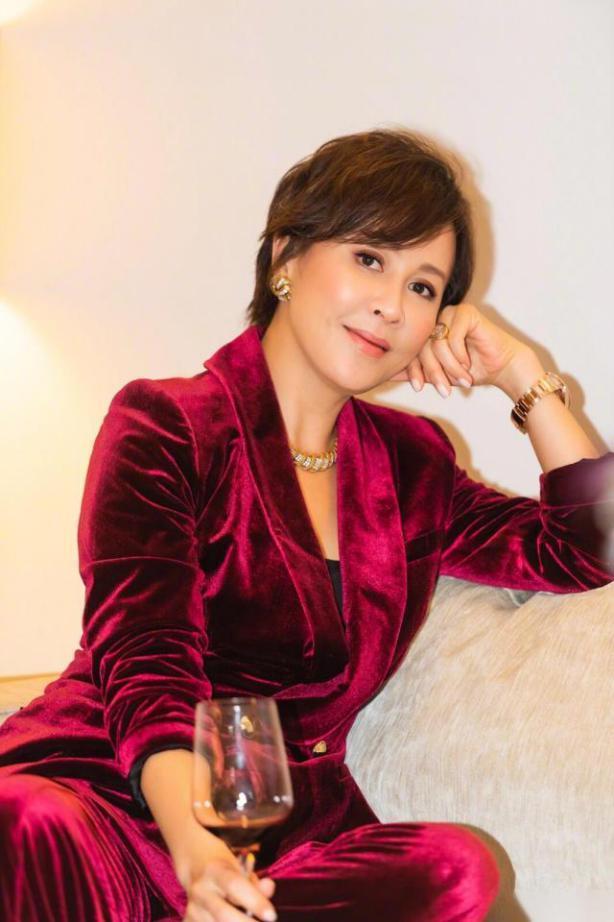 此前,刘嘉玲在参加活动时,穿着红色丝绒材质的西装套装,破天荒的选择了短发的造型,戴着精致的耳环和项链,名贵的金色手表非常好看,手上拿着一杯红酒,优雅极了。