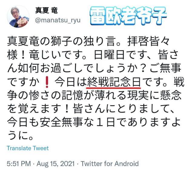艾斯奥特曼 高峰圭二为战败纪念日发声,却遭网友批评,不是终战?