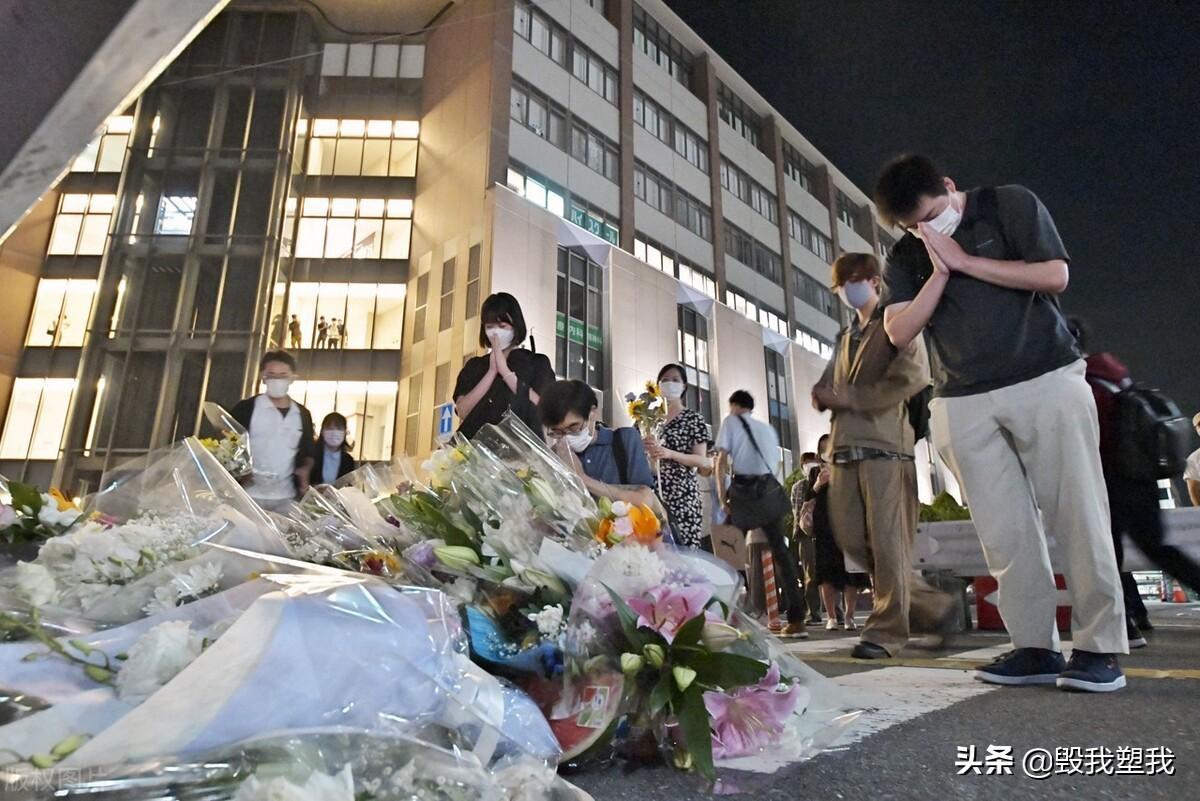 西大寺车站前,安倍晋三遇刺处,日本民众献花