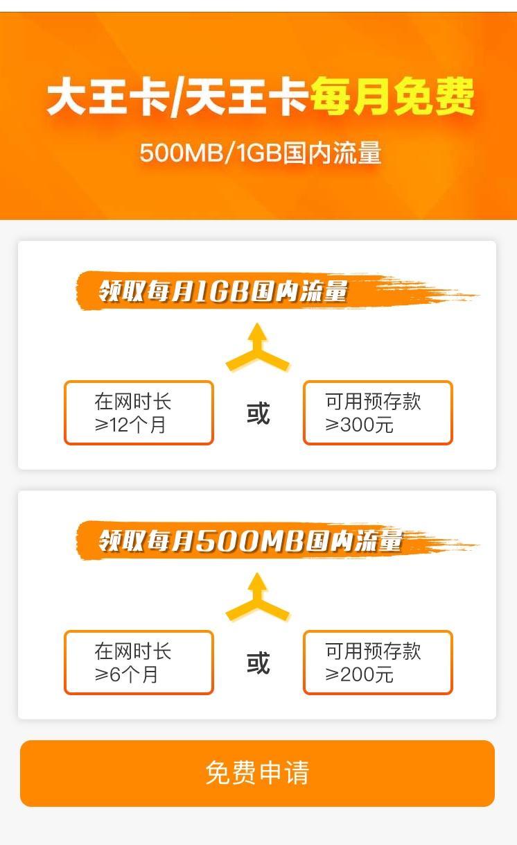 从官方的提供的消息来看,老用户只要满足在网时长>=12个月,就可以免费升级每月100分钟/1GB全国流量,如果在网时长>=6个月,则可以选择每月50分钟/500M全国流量,当然,如果你是新用户或者土豪,充它个300块,直接一步到位。