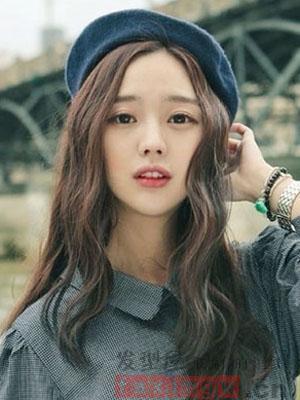 唯美的中长卷发设计,一张精致小脸,清纯尽显,微微内扣的波浪卷发,看上去非常清新自然,深棕色发色突出好气色,搭配时尚的帽子,俏丽迷人。