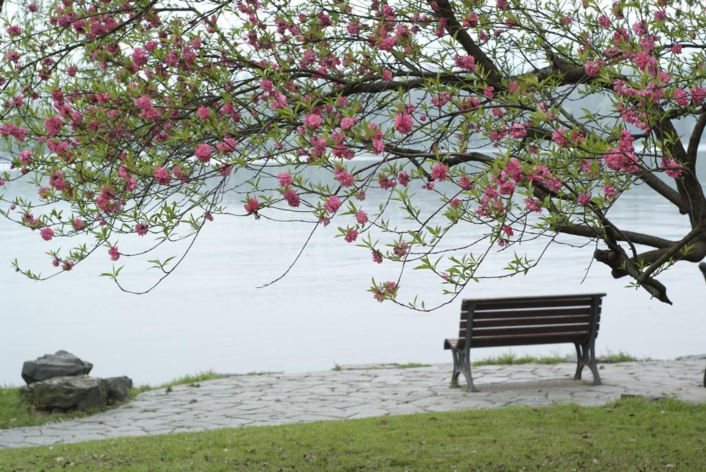 苏堤如一笔浓浓的墨,在浙江省杭州市西湖的柔波间点画出天下最长的墨痕。西湖这一汪清澈的水,在南屏山麓酿出了天下最香的酒,而苏堤横卧,恰似在盛满醇酒的酒樽中掷上一箸,溅起酒气芬芳的雾霭。