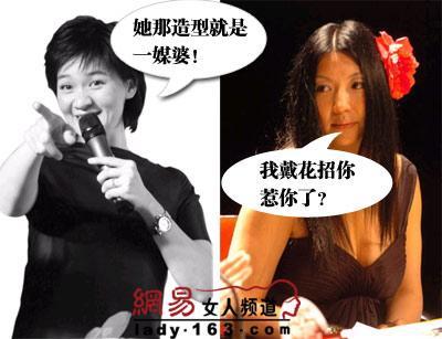 杨二和柯以敏的互掐延续到台前。2007年初重庆卫视《第一次心动》节目,让广大网友见证了两个女人就能唱台戏的场面。