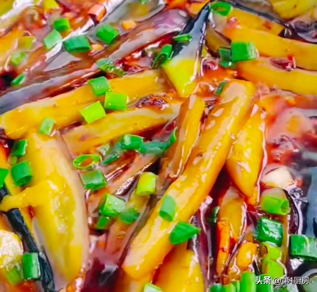 这道鱼香茄子制作方法,就是茄子不过油且能达到过油的效果,但必须要用盐腌制杀出水分,煸炒茄子的时候也需要火适当大一点,让水分尽快散发。还有注意炒制小料的技巧就可以了。至此,这道鱼香茄子的做法;就分享完成了。用心做好每一道菜,总有一个适合你,欢迎关注:第1厨房,每天与你分享美味佳肴。喜欢的朋友,别忘了点赞、收藏、转发,欢迎在评论区发表您的看法,或者分享您的做法。