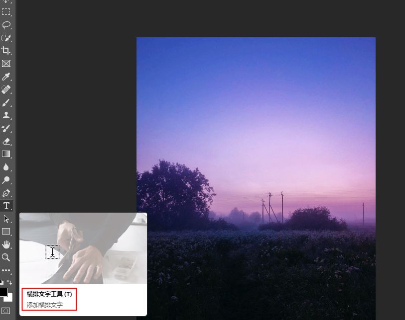 在电脑中打开PS工具,将图片添加进来,再从这边的功能菜单栏中找到【横排文字工具】,在方框内输入想要的文字,再调整它的参数,就完成图片添加文字的操作了。