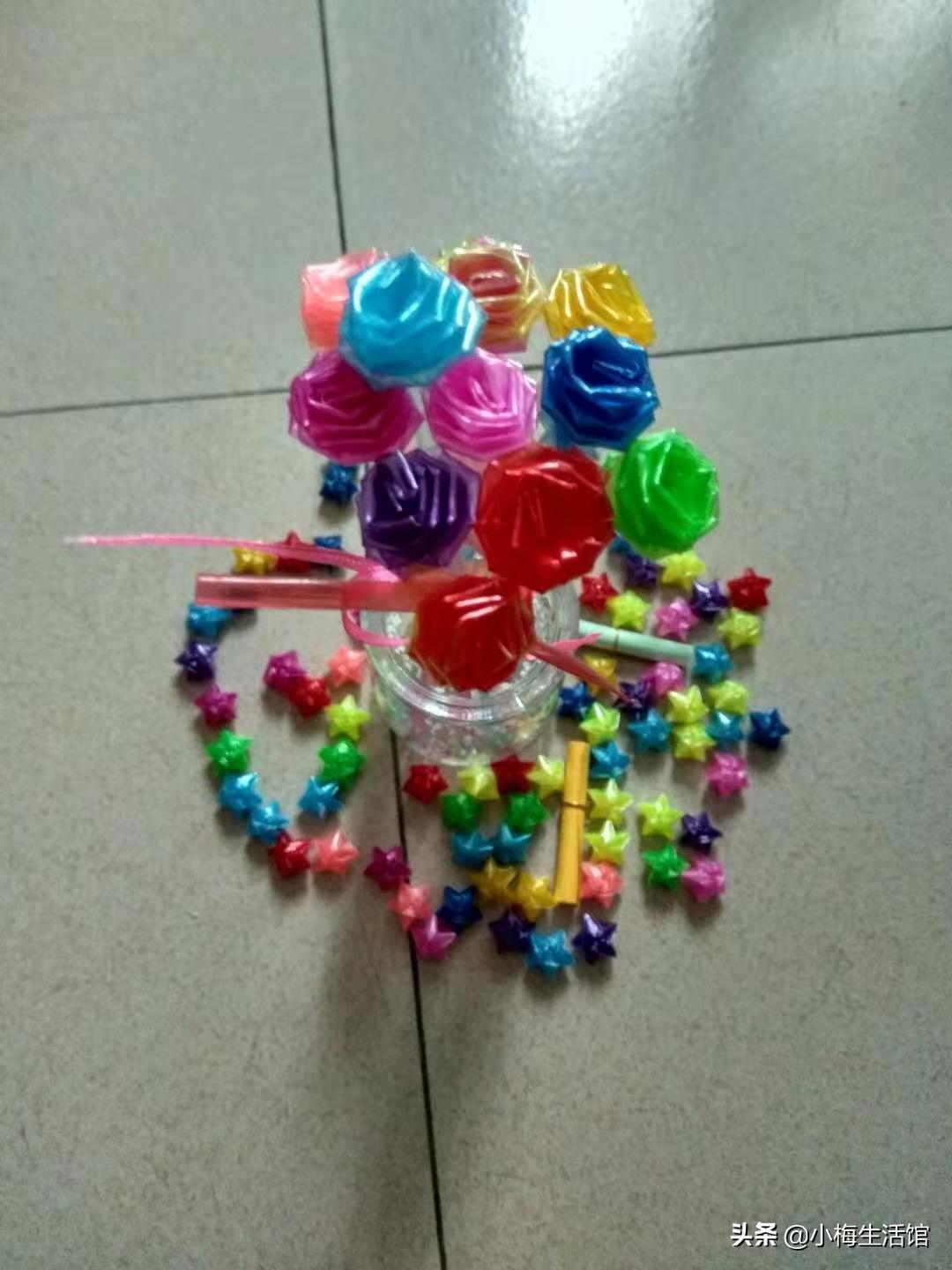 用塑料管折玫瑰花比折星星要简单一些,不会手疼,大家赶紧学起来吧!